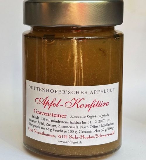 Nein, kein Apfelmus! Eine richtige Konfitüre, die das spezielle Aroma dieser uralten, aus Dänemark stammenden Sorte großartig zur Geltung bringt - intensive, an Vanille erinnernde Noten spielen hinein...